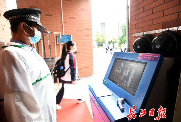 早上7点20分开始,友谊路中学初三学生分批返校,通过红外测温箱后有序入校。