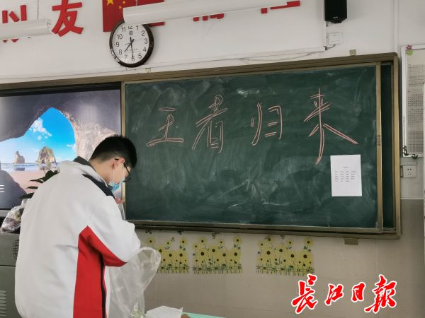 友谊路中学九年级4班的教室黑板上,写着“王者归来”。