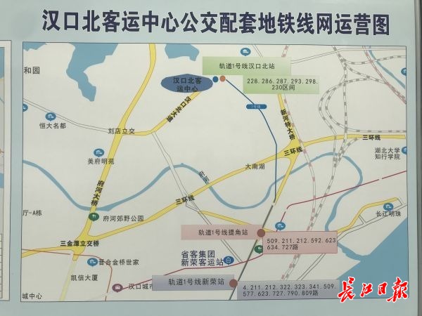 汉口北地区公交配套地铁线网运营图。记者王谦 摄