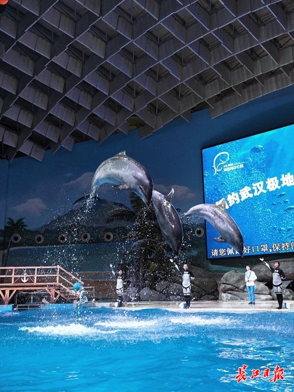 长江日报-长江网记者近日探班发现,这是一场梦幻又极具童真的演出:快乐的海洋公园里,肥嘟嘟胖乎乎的海狮、海象上演着萌萌的表演秀,海豚一跃而起,将水珠在空中抛洒出一道道优美的弧线。