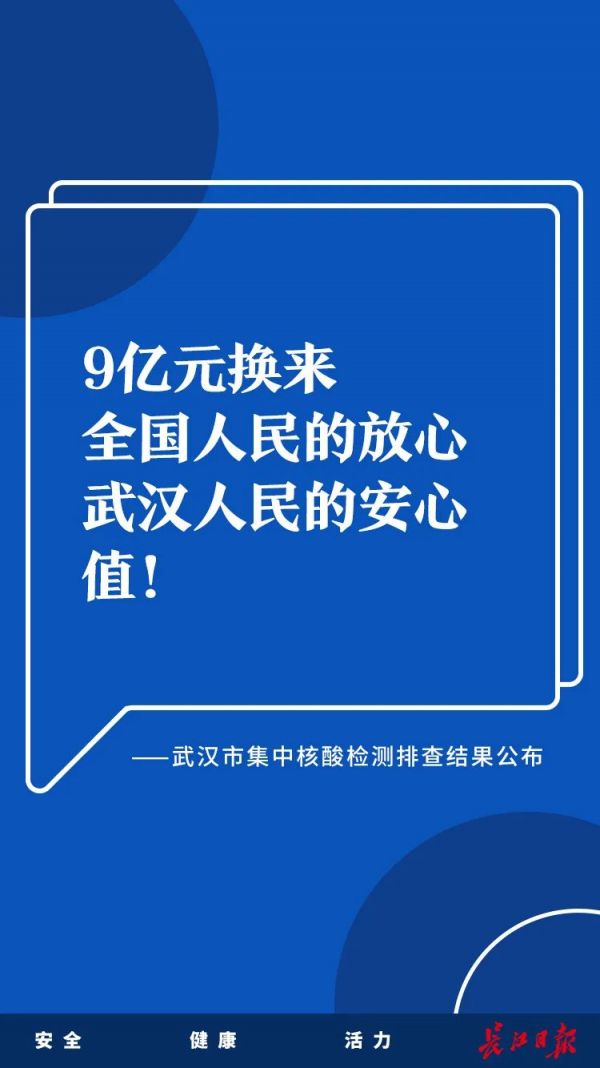 本次集中核酸检测费用由政府承担,通过集中采购降低成本,总支出9亿元左右。通过这次筛查,换来了全国人民的放心、武汉人民的安心,充分体现了我们党人民至上的执政理念,必将推动城市经济社会发展尽快步入正轨,这笔投入是完全值得的。