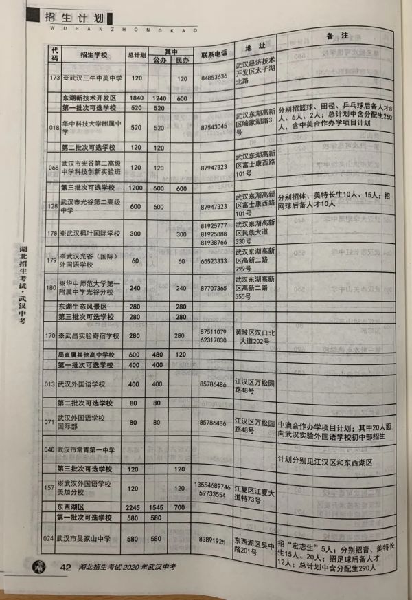 由于今年初中毕业生人数比去年增加了约3100人,武汉市普通高中和中职学校的招生人数都有相应增加。从发布的招生计划预安排来看,与去年相比,中心城区省级示范高中招生人数大多有所增加。如武汉市第六中学、武汉市第一中学、武汉市第十二中学、武汉市第十一中学、武汉市第四中学、武汉市第三中学、武汉市第十四中学、武汉中学、武汉市第四十九中学等学校,均比去年的招生计划增加了10人。华师一附中今年招生计划为560人,比去年增加20人,湖北省武昌实验中学今年招生计划为540人,比去年增加30人。汉阳区2019年4月新建的学校武汉市晴川高级中学,今年招生计划为360人,比去年增加了100人。也有部分学校与去年相比招生计划减少的,如武汉市第六十八中学减少10人,武汉市建港中学减少30人等。