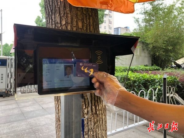 长江日报-长江网记者用手机打开微信小程序:武汉理工大学“校园E码通行”,将通行码贴近扫码口,终端机屏幕上立即显示出记者信息,包括身份证号、健康状况等,只听“滴”的一声,随后语音播报“请通行”。