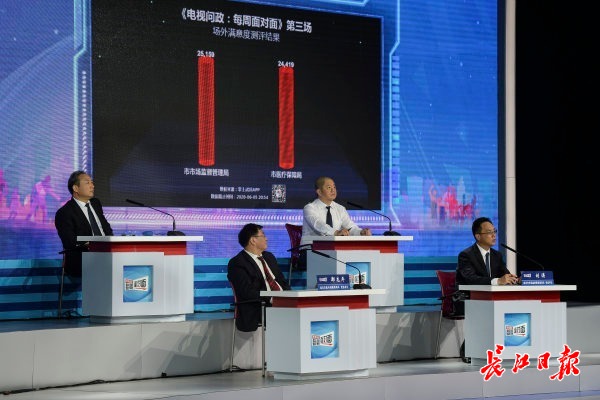 问政现场,武汉市市场监督管理局局长、党组书记刘涛,武汉市医疗保障局局长、党组书记郑先平,以及相关区职能部门负责人接受现场问政,就在统筹推进疫情防控和经济社会发展时相关部门是否主动作为、奋发有为的问题,与现场的由新闻当事人、党代表、人大代表、政协委员、企业代表、市民代表、网络名人、媒体观察员等组成的“市民提问团”对话、探讨。武汉大学中国新民营经济研究中心主任罗知教授进行了现场评析。