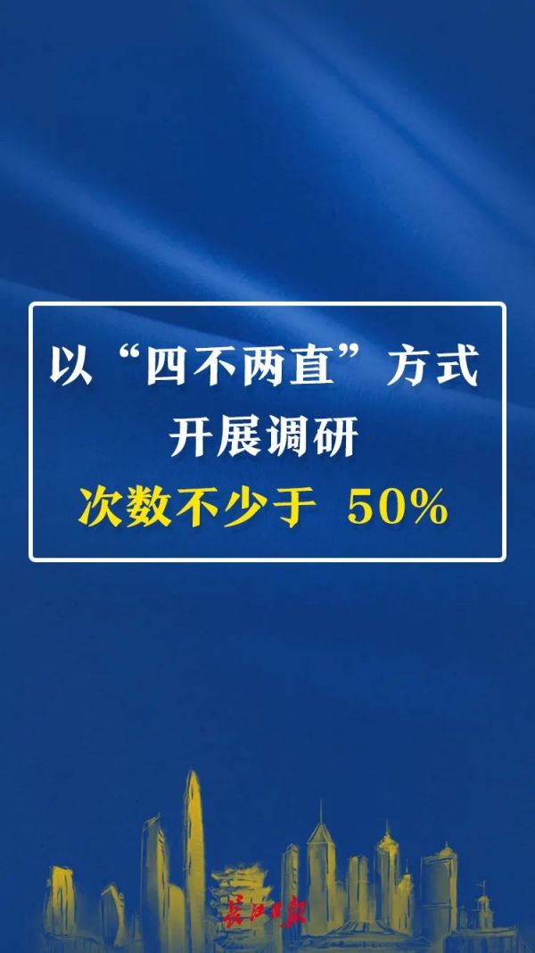 《若干措施》对调查研究等工作作出明确规定,要求改进调研方式,更多开展随机调研、蹲点调研、解剖麻雀式调研,以“四不两直”(即不发通知、不打招呼、不听汇报、不用陪同和接待,直插基层、直奔现场)方式开展调研次数不少于50%。