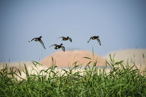 △宁夏石嘴山市平罗县沙湖景区。(新华社记者冯开华 摄)