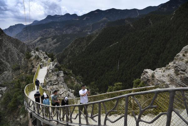 △市民在贺兰山国家森林公园。(新华社记者冯开华 摄)