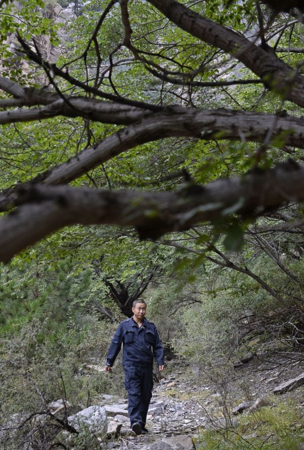 △宁夏贺兰山护林员孙国亮在护林区巡山。(新华社记者王鹏 摄)