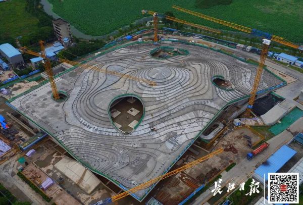 ◇ 琴台美术馆全面进入装修施工阶段,“屋顶梯田”雏形初现。