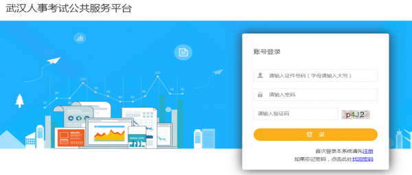 二、选择“武汉市2020年度事业单位面向社会公开招聘工作人员”进入网上报名系统后登录“武汉人事考试公共服务平台”。