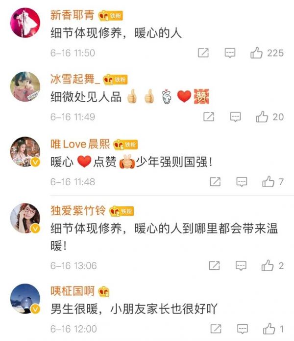 男生的行为引发众多网友点赞