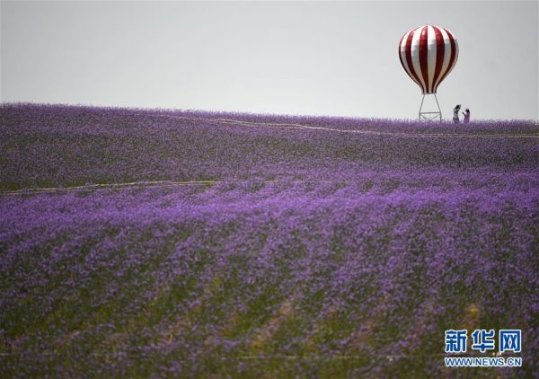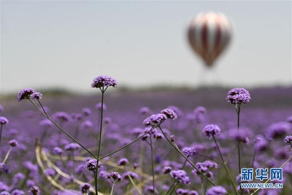 在地处毛乌素沙地边缘的宁夏银川市艾伊薰衣草生态基地,数千亩马鞭草绽放飘香。该基地通过改良荒漠土地,种植薰衣草、马鞭草、九叶菊等花卉以及樟子松、新疆杨等20余种树木,昔日的荒漠变身花海绿洲,走出一条生态治理、沙漠旅游和花卉产业为一体的生态发展之路。新华社记者 王鹏 摄