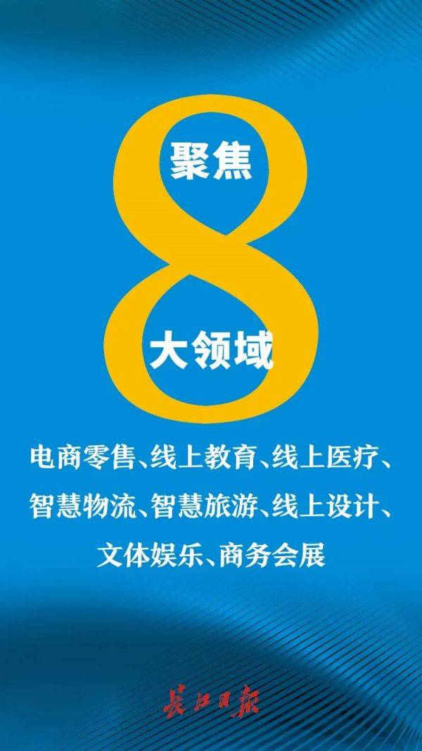 《实施方案》提出,武汉市将实施“8+3”领跑计划,聚焦电商零售、线上教育、线上医疗、智慧物流、智慧旅游、线上设计、文体娱乐、商务会展等8大领域,实现规模、产业、企业3大倍增。