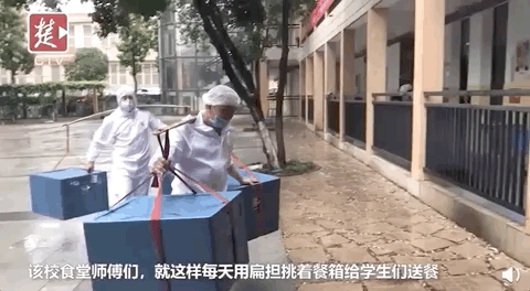 每天挑扁担给学生送餐