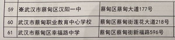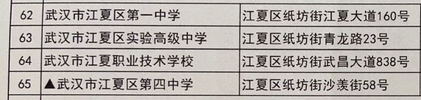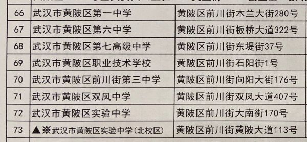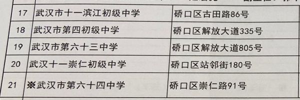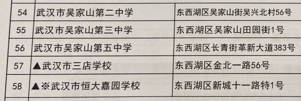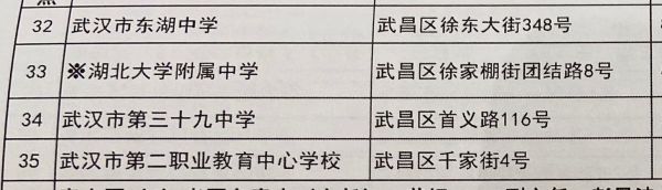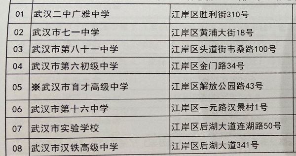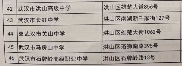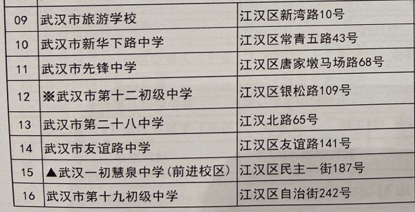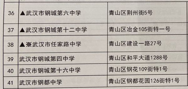 2020年武汉市中考考点考场一览表(标“▲”的考点为2020年新增考点)