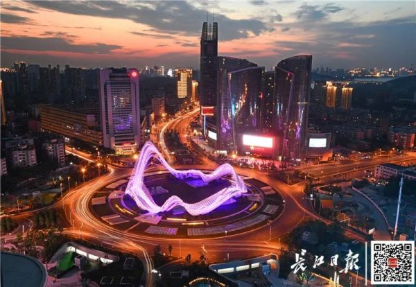 武汉光谷广场流光溢彩、车辆川流不息。 记者高勇 摄