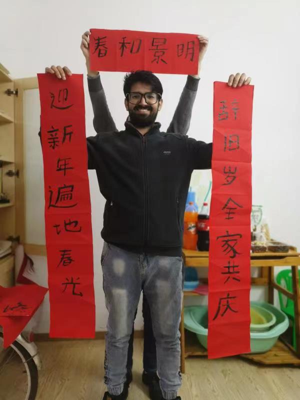 华中农业大学巴基斯坦籍学生法海写的春联。