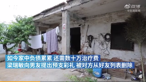 近日,一名河南郑州25岁女研究生梁瑞敏自称,为救父亲向男友预支8万彩礼,被对方拉黑。梁瑞敏的父亲突发脑出血花去了70多万元,家徒四壁、负债累累。她向相恋5年的男友提出结婚,让男友提前预支8万彩礼钱,可是却被对方拉黑,联系不上了。你怎么看?
