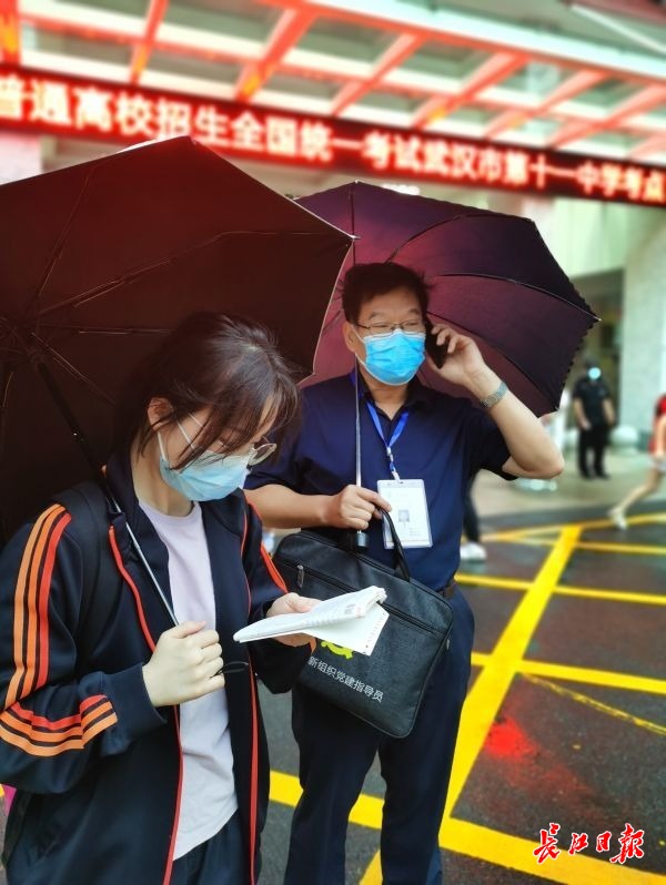 长江日报-长江网7月7日讯 “好好考,汤老师为你们站好最后一班岗。乘风破浪,你们能行!”7月7日一早6点多,58岁的全国模范教师、湖北省特级教师、武汉市第十一中学高三(3)班班主任汤彦平提前近两个小时来到武汉市第十一中考点,一遍又一遍地把学生接进候考区,为他们加油鼓劲。雨水打湿了他的衣袖,雾气模糊了他的眼镜,学生们都说:“只要老汤往那儿一站,就感觉浑身充满力量!”