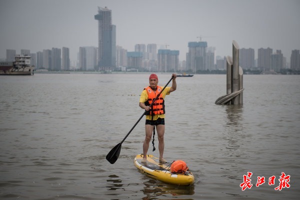 11日,一名长江救援队队员在汉口江滩江面上巡逻。 记者任勇 摄