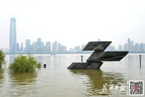 汉口江滩亲水平台的雕塑《逝水》的水下部分有3米多深。记者喻志勇 摄