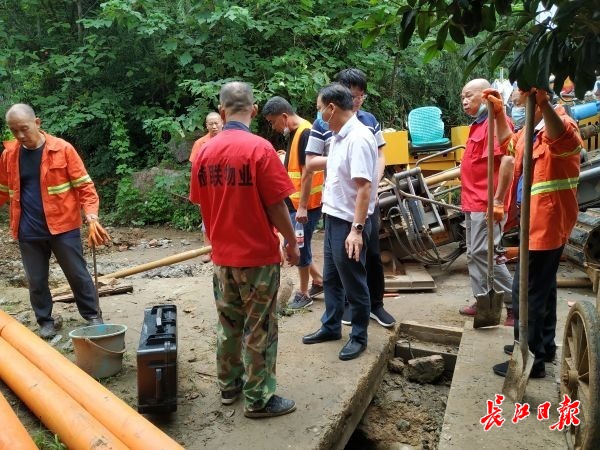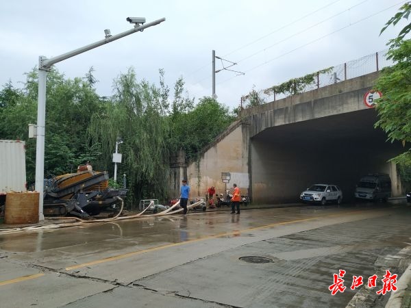 长江日报-长江网记者在现场看到,一条地下排水通道已通过拖拉管的螺旋钻打通,工作人员正在进行埋管工作。“修好这条排水通道后,这个涵洞的排涝压力会大大减小。”童文利说道。