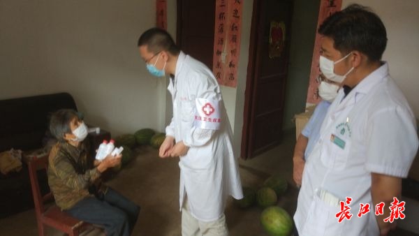 临行前,李佐民送给方统荣一些治胃酸、防蚊虫叮咬等用途的药品,嘱咐老人按时按量吃药。看到老人住的一楼有蚊子飞过,他停下脚步,转身对滨湖街社区卫生服务中心的医生说:“这里蚊子多,最好多做些消杀,经常来看看老人。”3位随行的武汉市疾控中心专家,也上前为老人讲解了汛后家中消杀的基本医疗知识。