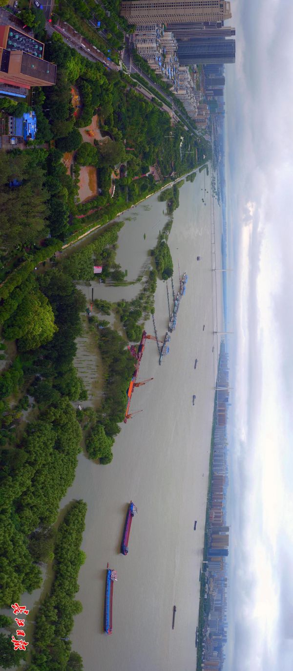 长江日报-长江网7月16日讯 7月16日13时,长江汉口站水位28.27米,超警戒水位0.97米,比12日23时洪峰通过时的28.77米下降0.5米。当前长江、汉江仍在高水位运行,防汛形势依然严峻。原定于7月16日举行的第46届武汉渡江节已经取消。记者李永刚 摄影报道