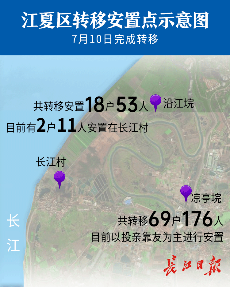 江夏区金口街有两大单体民垸——凉亭垸和沿江垸。金口街道办事处副主任刘贤明告诉记者,两垸转移的群众主要是外来承包户和周边居民,大部分已回家或投亲靠友,目前仅2户11人安置在长江村。