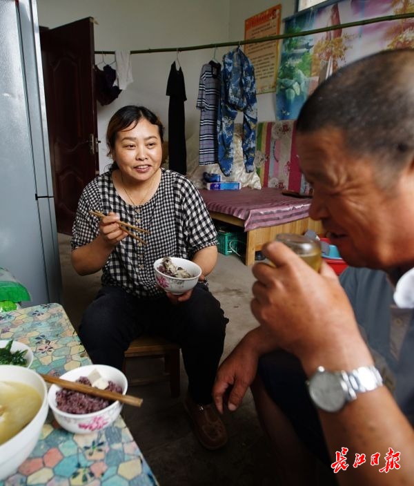 曹学习,胡勇井夫妇在吃午饭。记者何晓刚 摄