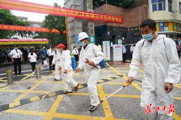 长江日报-长江网7月20日讯 2020年7月20日武汉市中考第一天,7时,武汉市第三十九中学考点外,武昌公安、交警、城管多部门联动为考生营造良好的考场周边环境,考生在考点附近吃早餐。 (记者何晓刚 史伟 摄影报道)