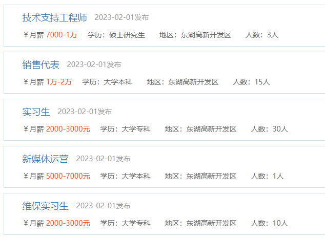 东湖高新区“2023年春风行动暨就业援助月专场招聘”