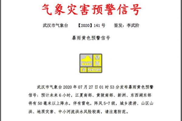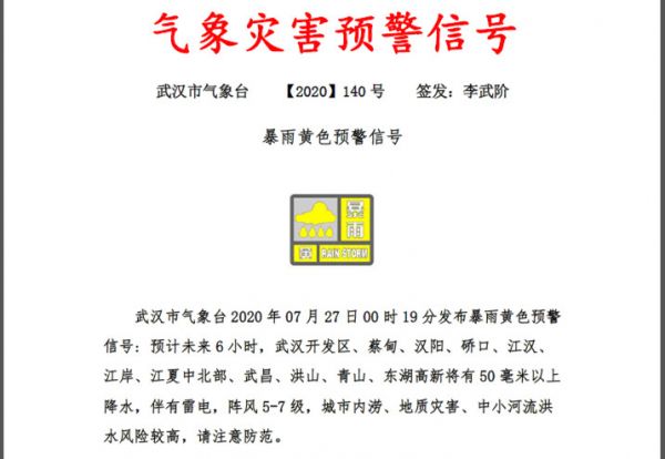 (来源:武汉市气象台,7月27日02:20发布)