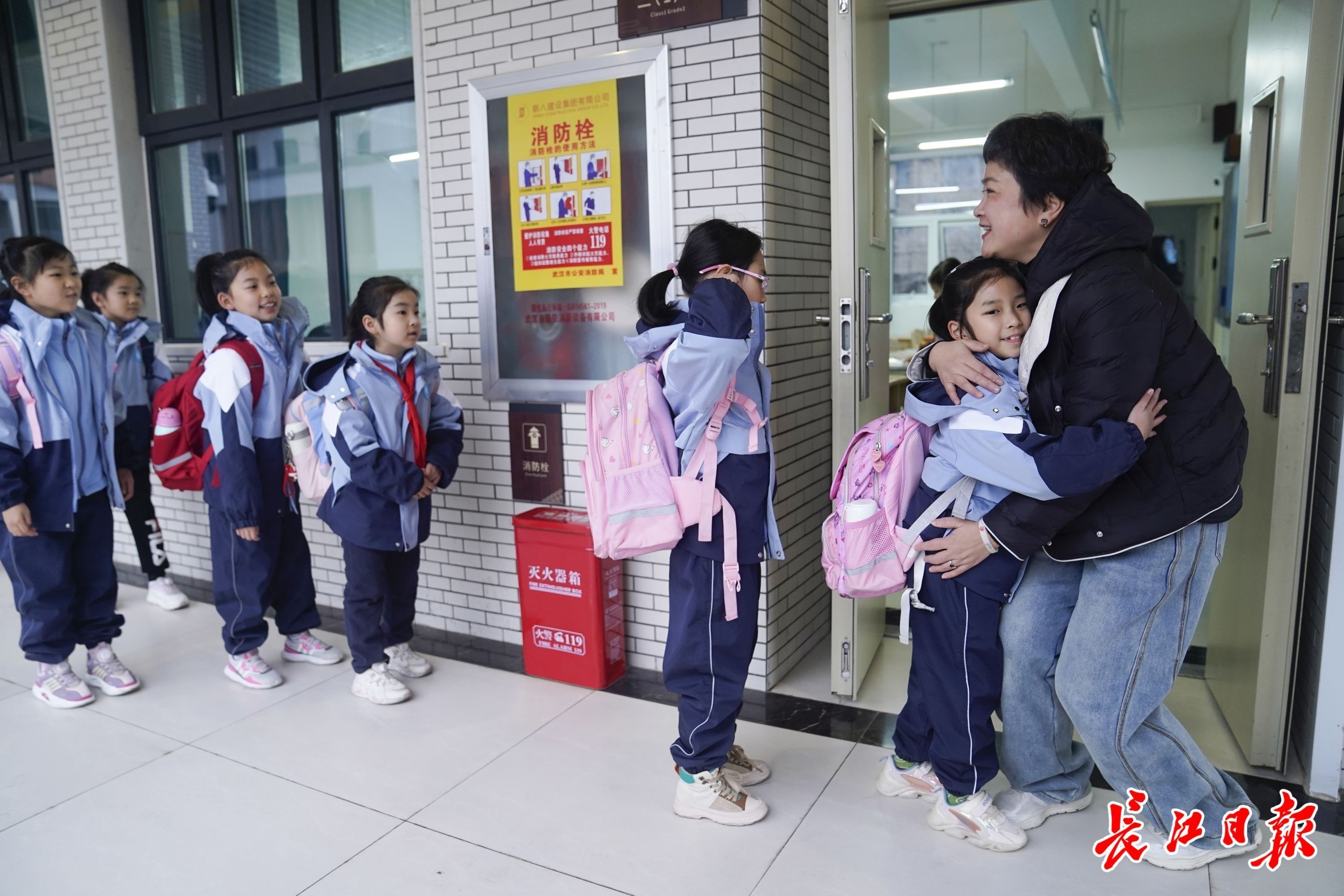 “王老师,新年好!”“新学期奥利给!”6日上午8时,汉口辅仁小学CBD校区二(1)班班主任王俊站在教室门口迎接许久不见的孩子们。每个孩子都用“专属动作”跟王老师打招呼,比心、击掌、抱拳……用自己的方式表达激动和亲热。