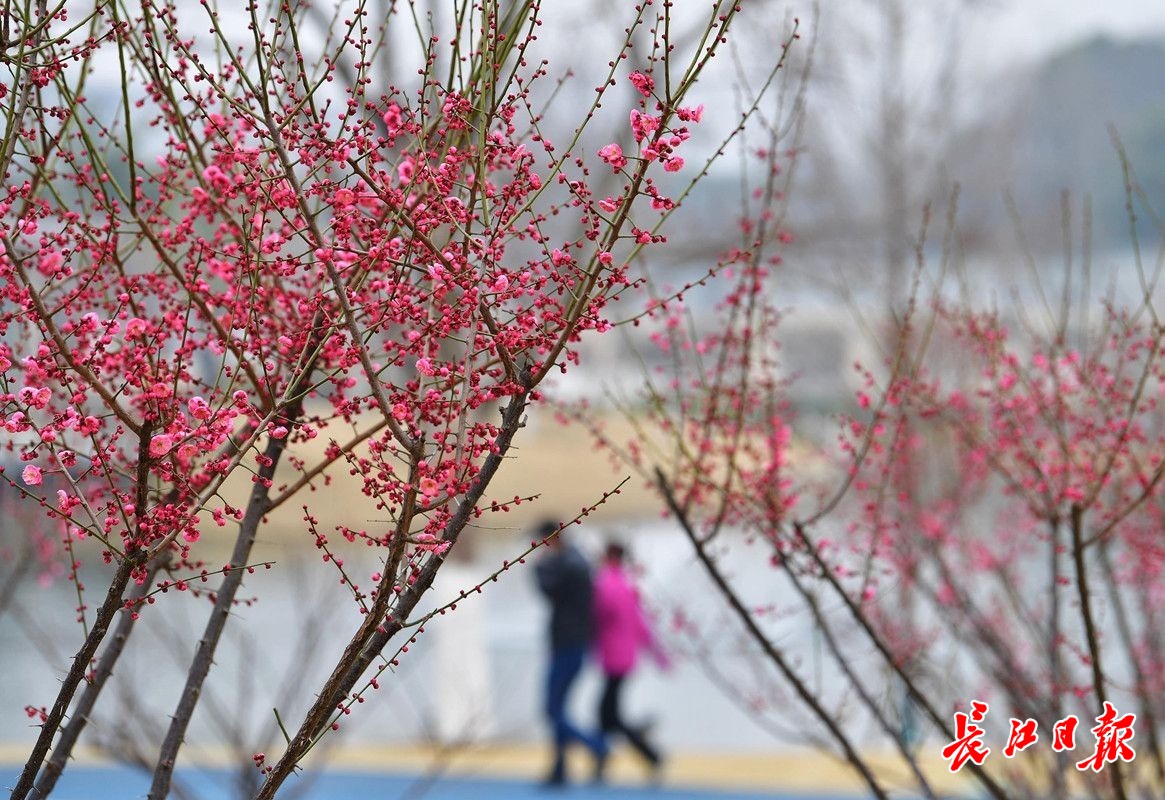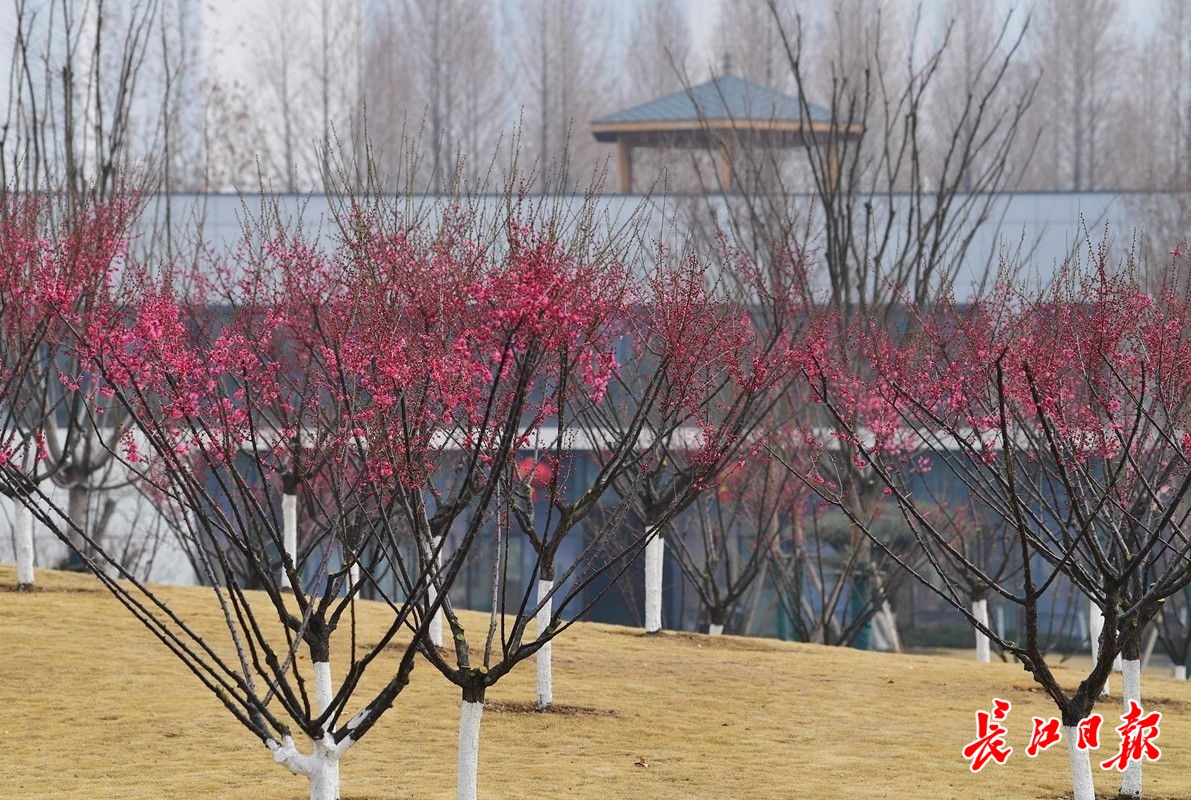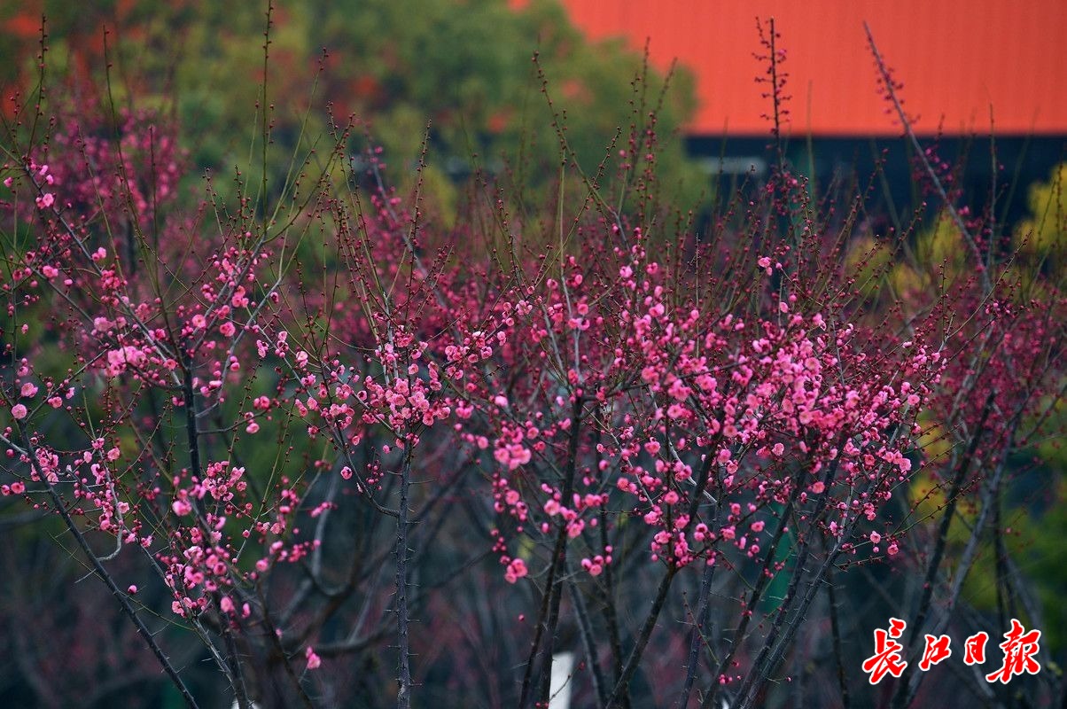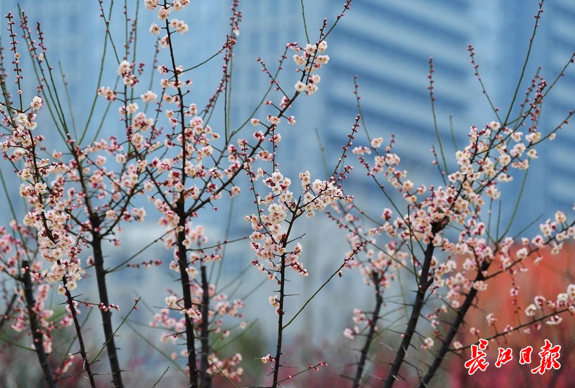 长江日报大武汉客户端2月6日讯 2月6日,武汉市常青公园梅园内,200余株梅花或红或白或粉的花朵挂在枝头,远远望去,梅色甚浓,走近细瞧,盛开的花朵却显得有些稀疏,仍是初花阶段。据了解,今年武汉梅花的盛花期比去年晚了大约一周,而且不同位置、不同梅树的花期每年也会前后摇摆。(长江日报记者李永刚 摄影报道)