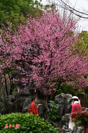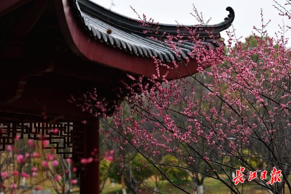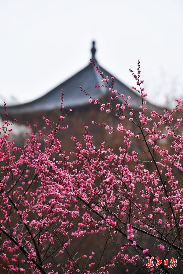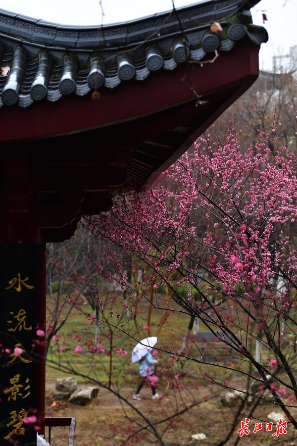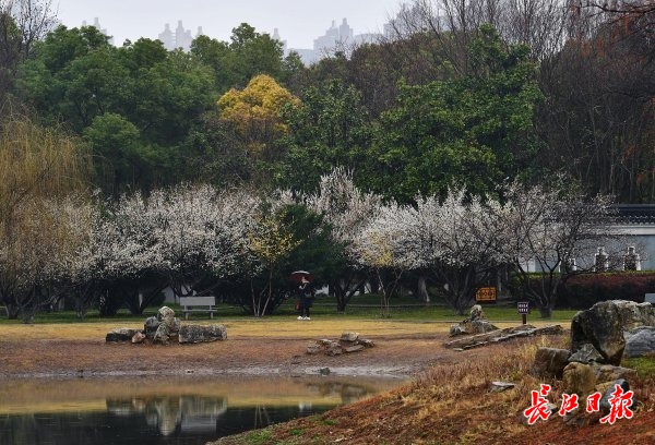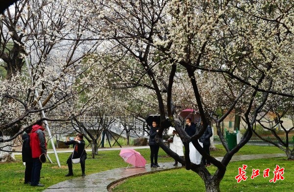 长江日报大武汉客户端2月8日讯 8日,武汉市堤角公园内,盛花期的白色江梅和即将全面盛开的宫粉梅在时断时续的细雨中别有一番景致,白色的花瓣更显晶莹,粉色的花瓣愈发娇艳,初花期的绿萼梅也在雨水的滋润下仙气十足。一些市民冒雨赏梅,情趣盎然。