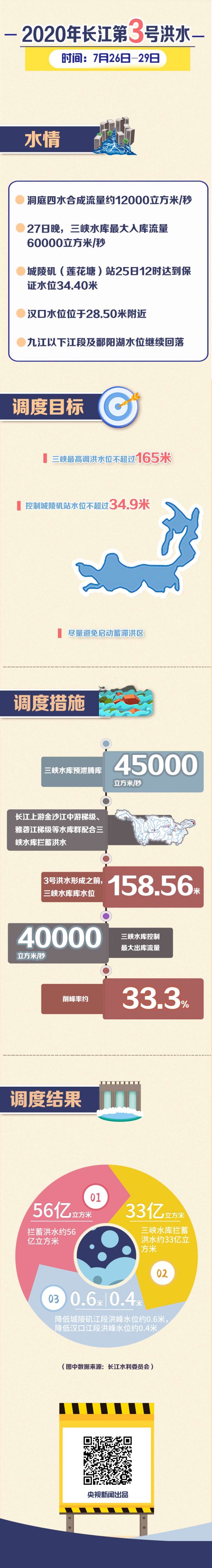 截至7月29日14时,三峡枢纽入库流量退至34000立方米/秒,长江2020年第3号洪水已安然通过三峡大坝。