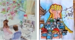 学生们参加“空中赛场”书画比赛的作品。图片由校方提供