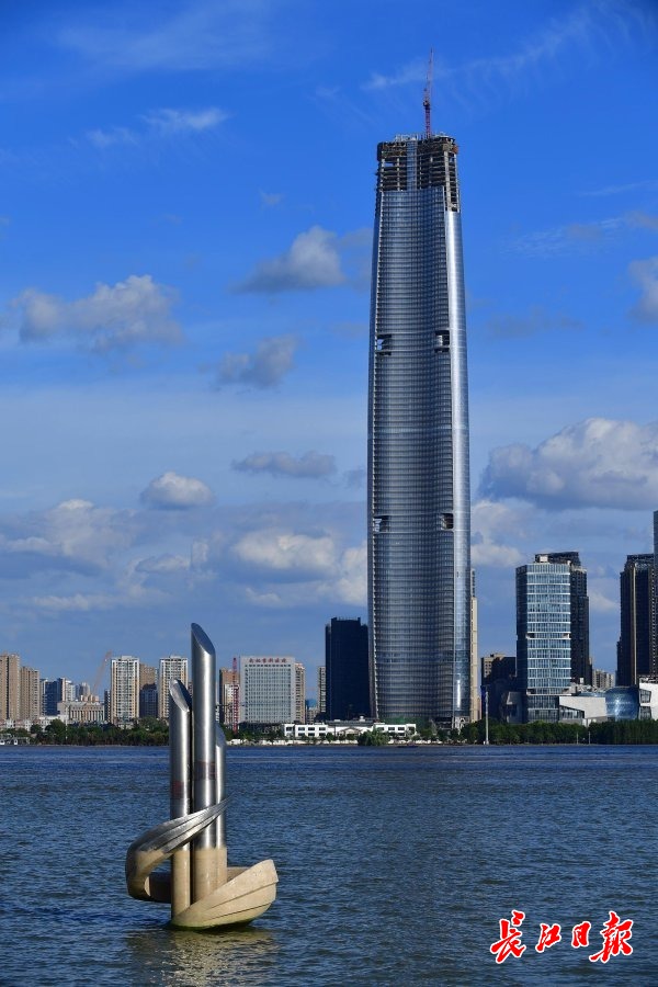 汉口江滩水位标记雕塑。