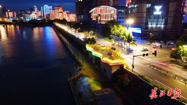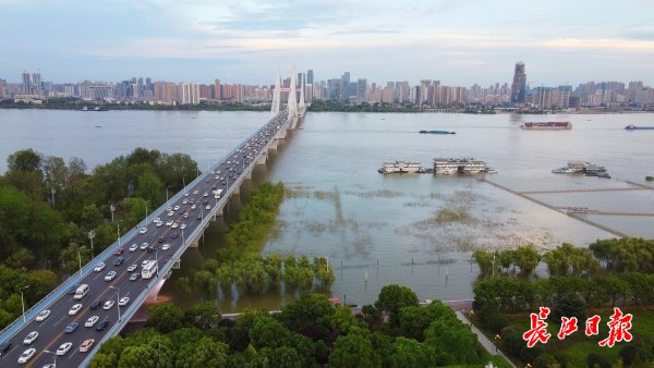 长江二桥下的汉口江滩,亲水平台及滩地已逐渐显现。