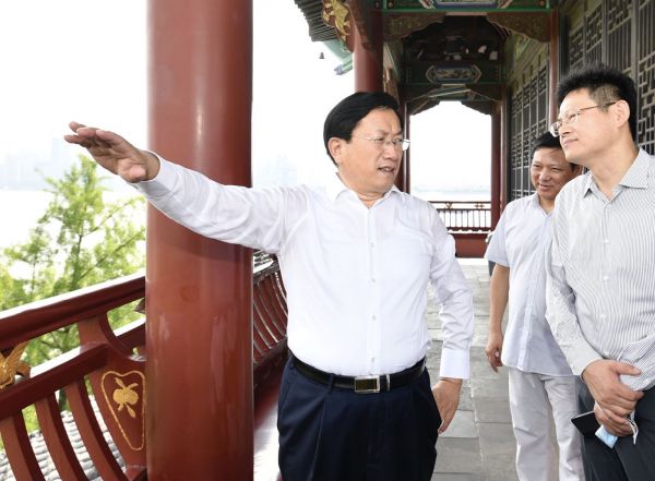8月9日,湖北省委常委、武汉市委书记王忠林调研百里沿江生态文化长廊和历史文化街区规划建设工作。