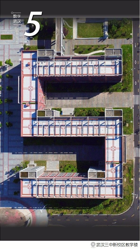 今年8月的一天,继续在卫星地图上寻找时,终于在汉阳四新找到了一座教学楼,简直就是一个完美的“5”,同时还在附近又找到了一个“3”。