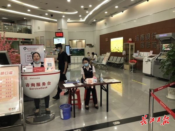 合作银行社保卡代办点之一招商银行后湖支行,工作人员正在解答记者的咨询。 记者杨荣峰 摄