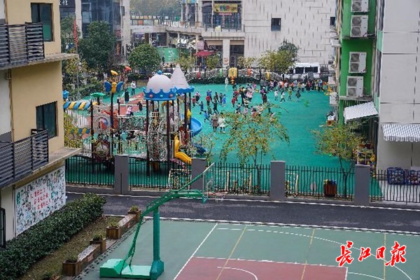 在江岸区实验博雅小学,记者看到:羽毛球课,小朋友们排成一字在练习挥拍;篮球课,几人为一个小组练习运球投篮;足球课,减少对抗,以体能和射门训练为主。