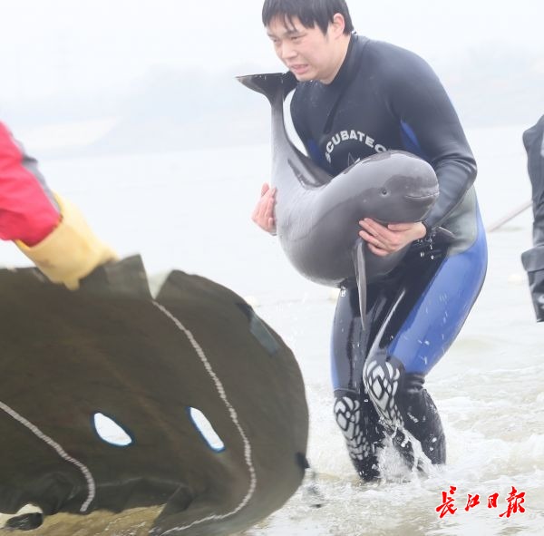 2014年1月,在武汉天兴洲被救助的江豚。(资料图)高宝燕 摄