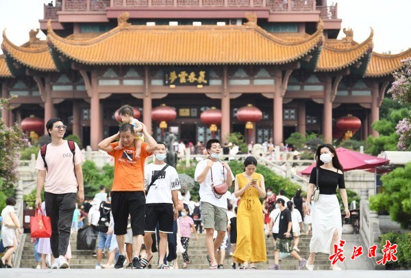 8月25日,武汉黄鹤楼公园,众多省内外游客纷纷来到黄鹤楼打卡游玩。 记者 詹松 摄