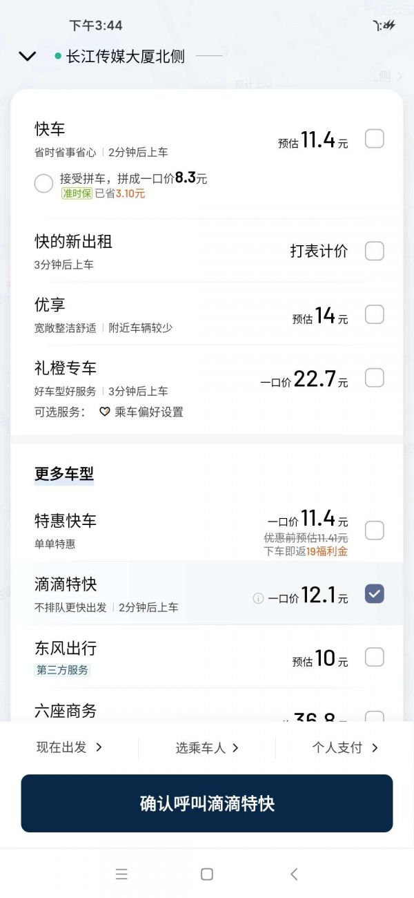 在武汉,滴滴出行APP中的“出租车”已更新为“快的新出租”。