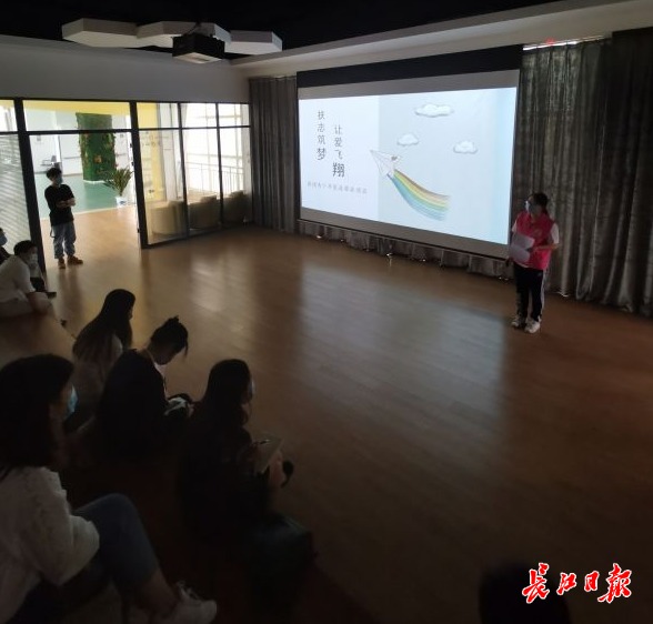 工作人员在介绍汉阳区新时代文明实践志愿服务组织孵化基地。记者史强 摄