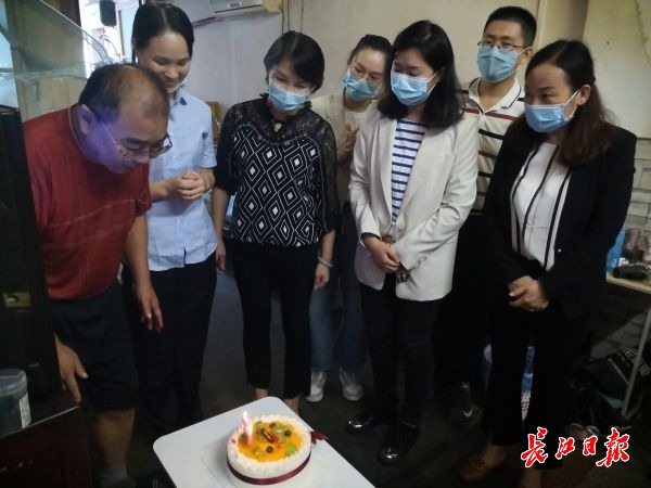 长江日报-长江网9月17日讯(记者万凌 通讯员魏晓旋)“您有糖尿病,蛋糕少吃点,今天的药吃了吧?”17日中午,租住在汉阳区永丰街赏新园小区的张茂宏喜出望外,汉沙社区党总支书记艾萍、赏新园小区“第一书记”高春玲等人带着蛋糕来给他过生日。 由此,湖北省交投集团下沉党员高春玲协助汉沙社区策划的“微孝手拉手”公益计划正式启动。