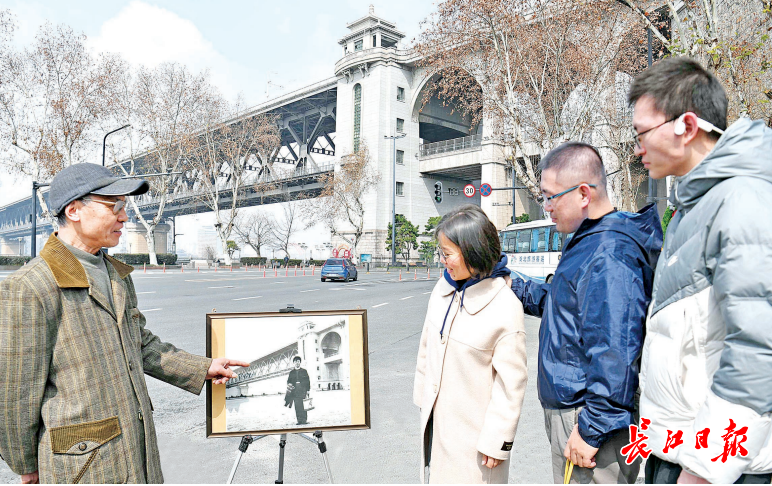 2月24日,黄德宝带着藏品《雷锋在武汉长江大桥》来到雷锋65年在大桥拍摄之处,宣讲雷锋精神、缅怀雷锋。长江日报记者高勇 摄